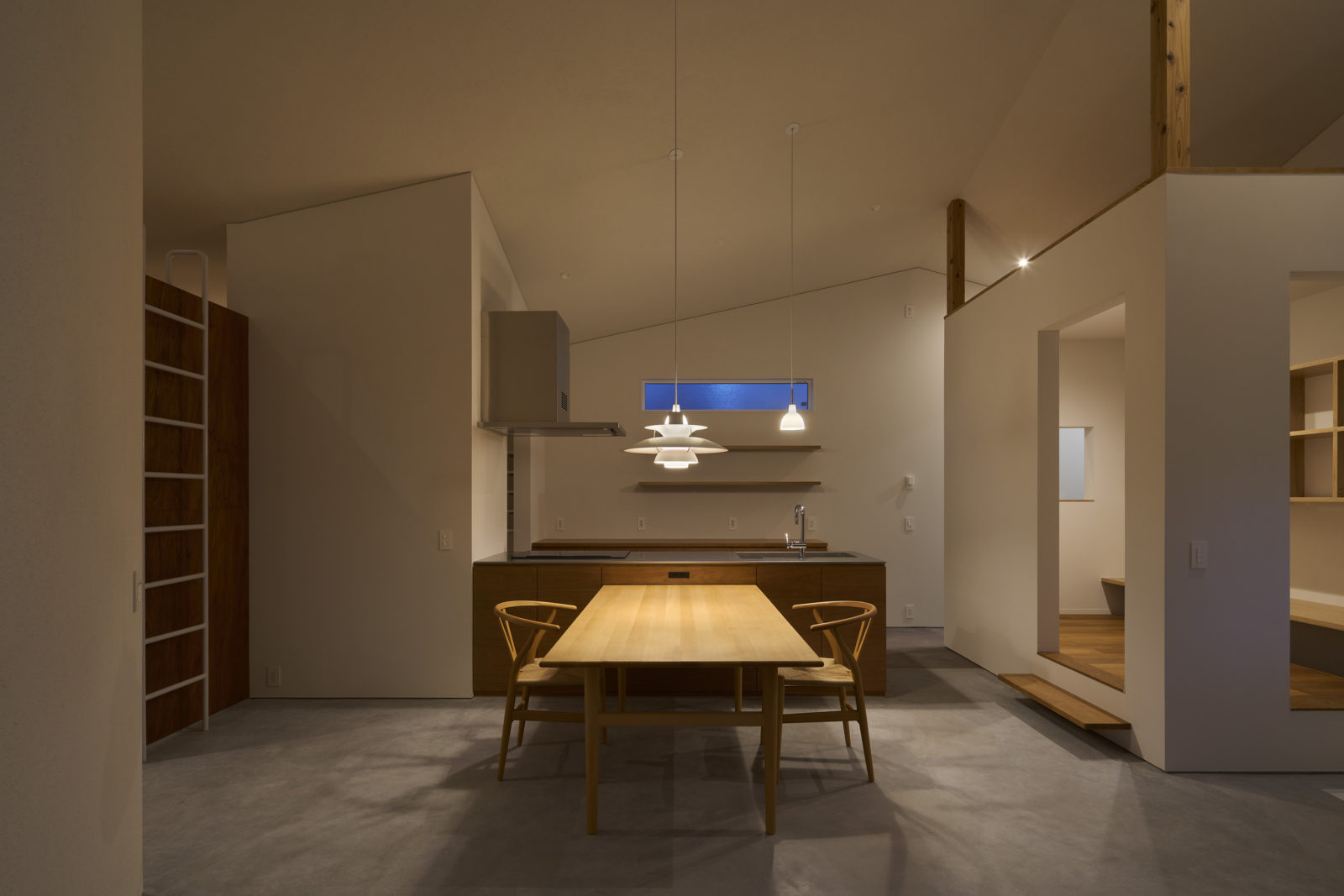 この建物は、株式会社川島真由美建築デザインによる設計のもと、一つの大きな空間の中に様々な部屋(居場所)をつくり、日常の家族生活を包み込む巣ごもり的な心地よさを感じることができる家となっています。
