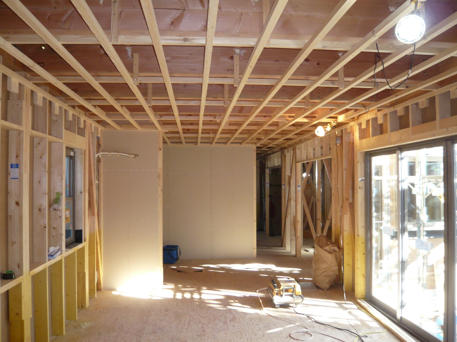 間柱やサッシが入り、部屋としての形が見えてきました。