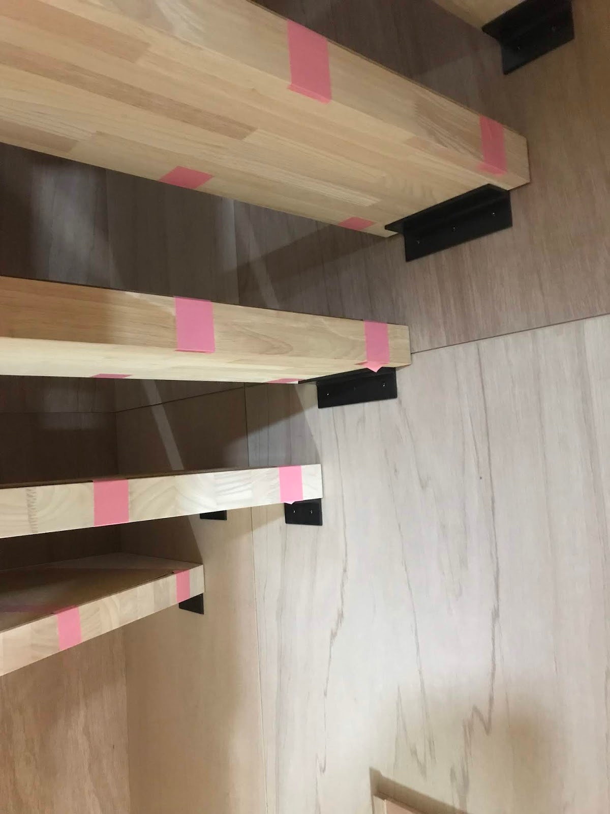 | 合板も綺麗に仕上がってシンプルで素敵な階段になりましたね。 |